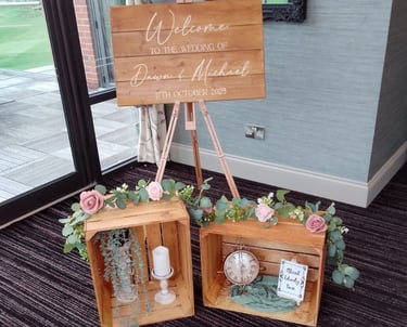 We can create personalised displays to welcome your guests also to decorate your ceremony, wedding breakfast or reception.