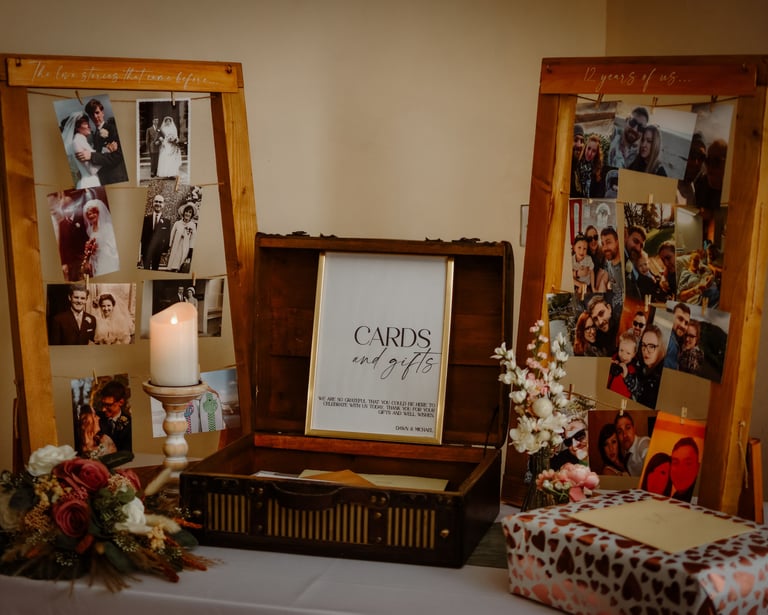 Rustic wooden photo boards are a great way to show how your love has grown over the years. They can also be used to show family weddings from days gone by as a lovely trip down memory lane. Combine with a case for all those wedding cards and gifts.